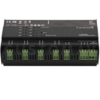 Control4 8-Channel Adaptive Phase Dimmer (C4-DIN-8DIM-E) - 8 канальный адаптивный диммер (регулятор), который способен контролировать до восьми типов нагрузки включая лампы накаливания, галогенные, электронные низковольтные(твердотельные) трансформаторы, магнитные (с железным сердечником) низковольтное трансформаторы, флуоресцентные лампы, компактные флуоресцентные лампы, светодиоды и электродвигатели. Диммер (регулятор) Control4 C4-DIN-8DIM-E автоматически определяет тип нагрузки и устанавливает соответствующий режим затемнения. Особенности Control4 C4-DIN-8DIM-E: • Контролирует до восьми типов нагрузки . • Каждый канал может быть установлен в различных режимах затемнения. • Кнопки каналов позволяют включать ,отключать , а также регулировать ток нагрузки. • Светодиодные индикация состояния каналов.( нормальная работа и тепловой перегруз) • Link / Activity- светодиодный индикатор состояния системы связи (активность связи или статус обновления прошивки). • Кнопка Reset можно использоваться для заводских или различных параметров настройки системы.