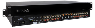 - Выходы триггера 12 В обеспечивают простое включение / выключение усилителей мощности Triad или других устройств, поддерживающих возможности включения питания 12 В.